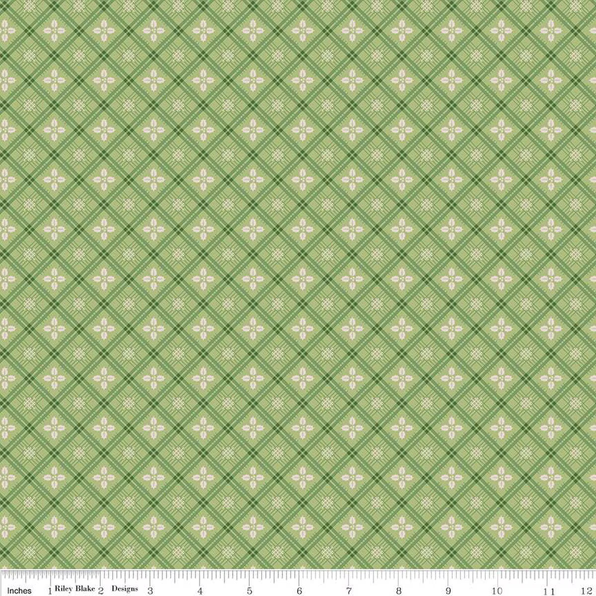 Home Town Holiday by Lori Holt of Bee in my Bonnet for Riley Blake Designs is great for quilting, apparel and home decor. This print features a diagonal plaid design with holly leaves.