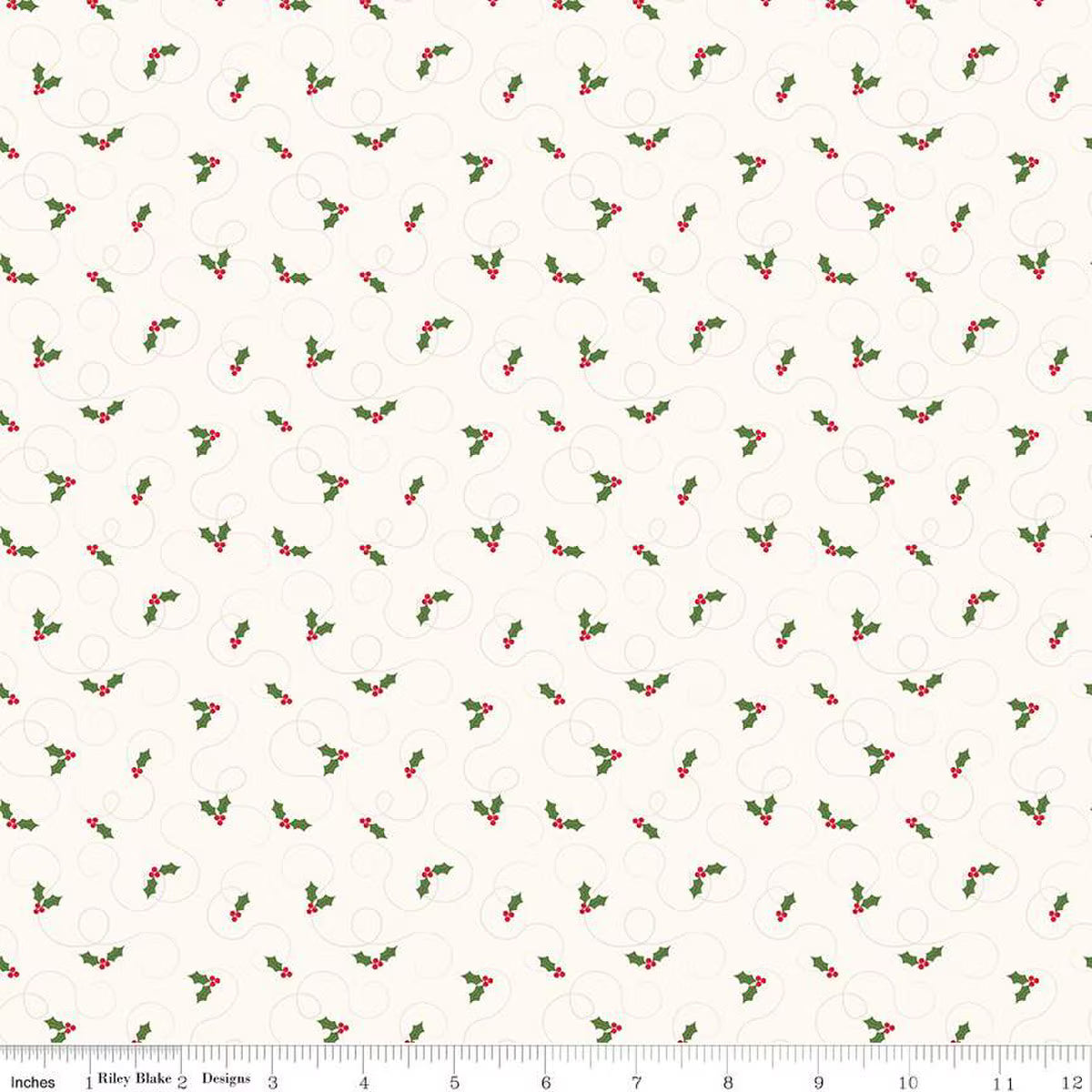 More Christmas Wishes by the RBD Designers for Riley Blake Designs is great for quilting, apparel and home decor. This print features sprigs of holly and berries.